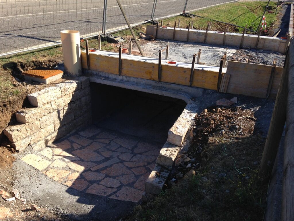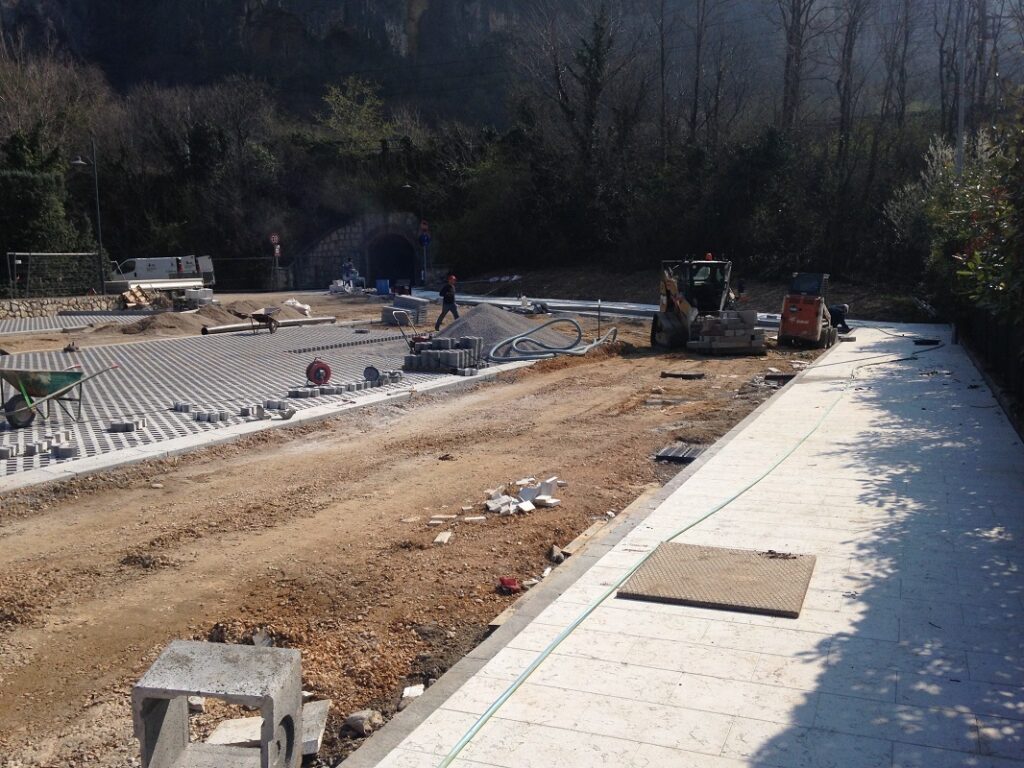 L’intervento ha riguardato la sistemazione del sito esistente con realizzazione di un parcheggio e di un campetto sportivo polivalente in manto erboso sintetico. Contestualmente, a corredo delle opere principali, sono stati realizzati lungo la S.S.12 due attraversamenti pedonali a raso con impianto semaforico.
