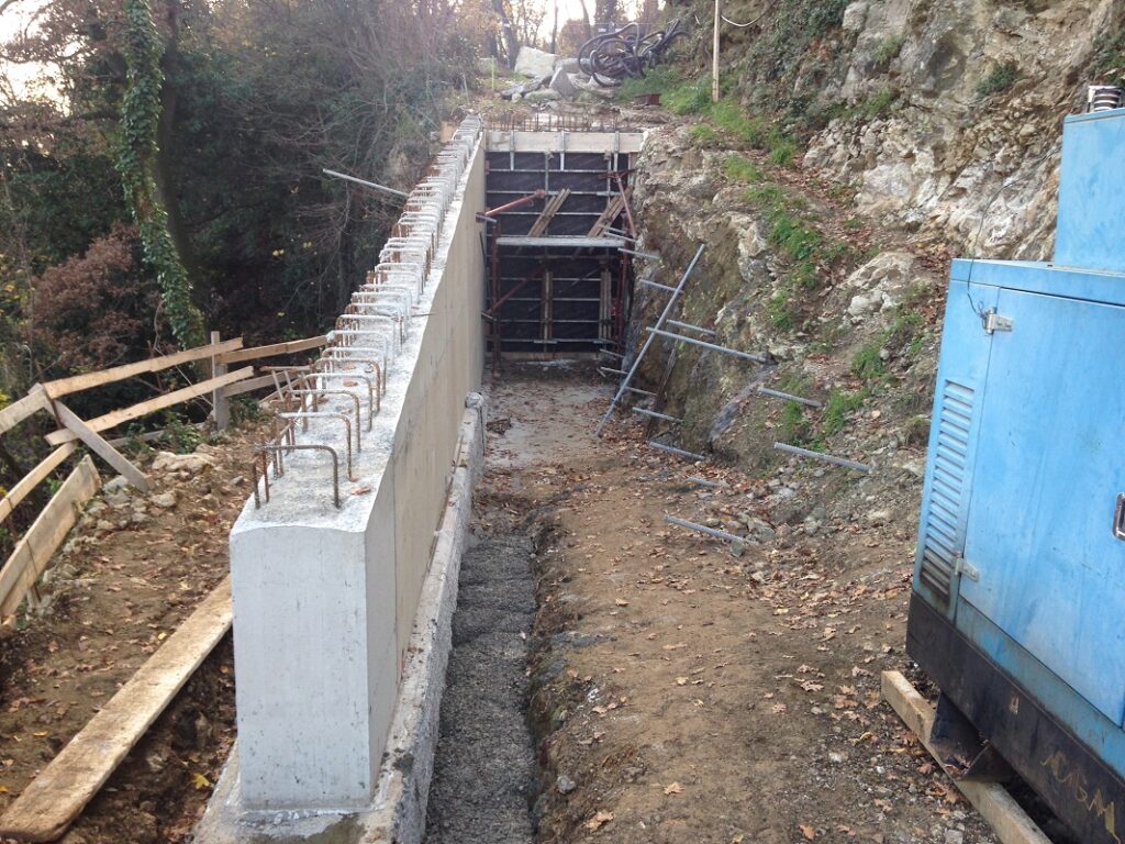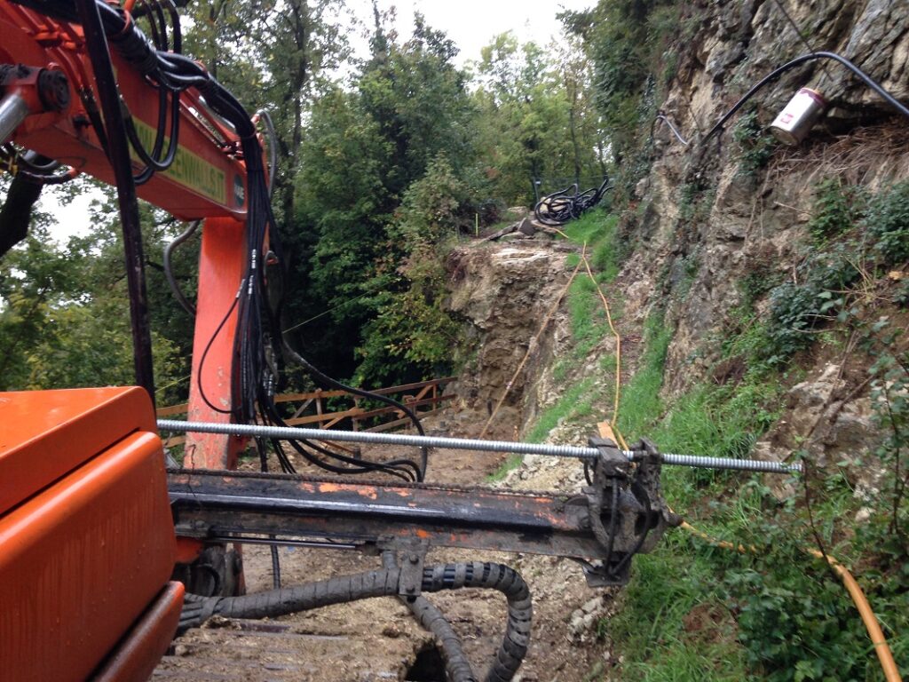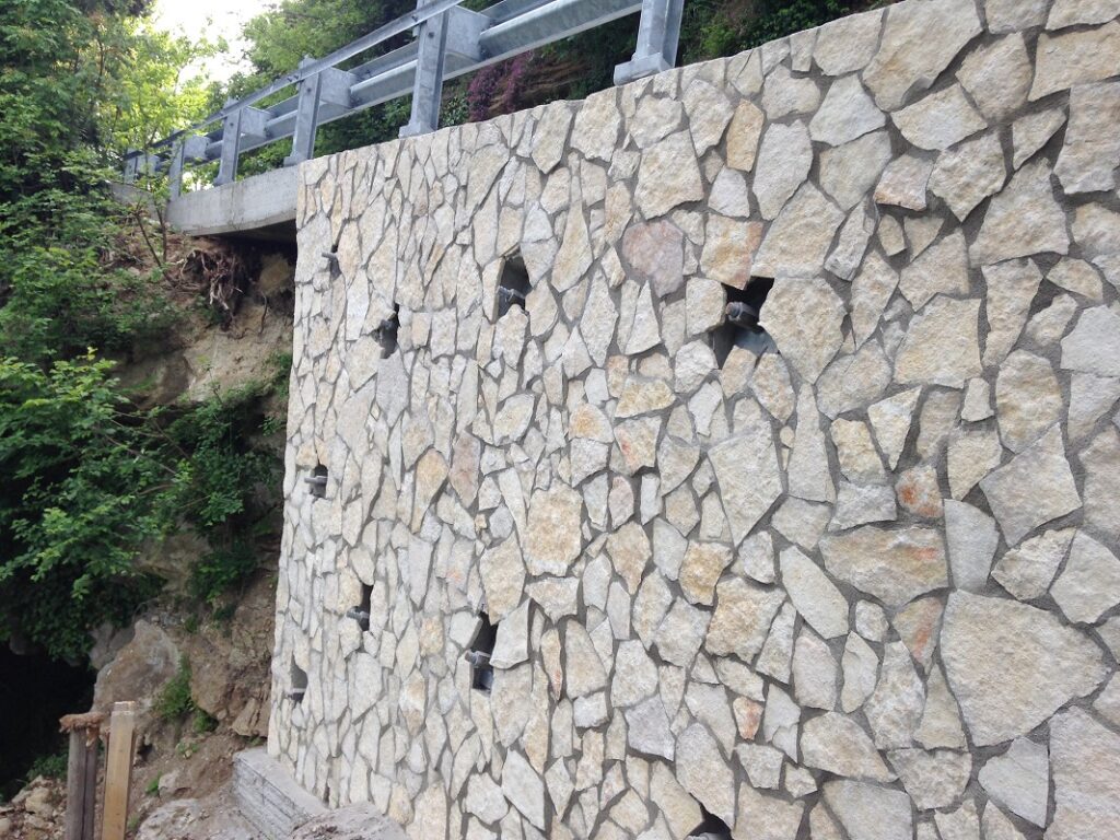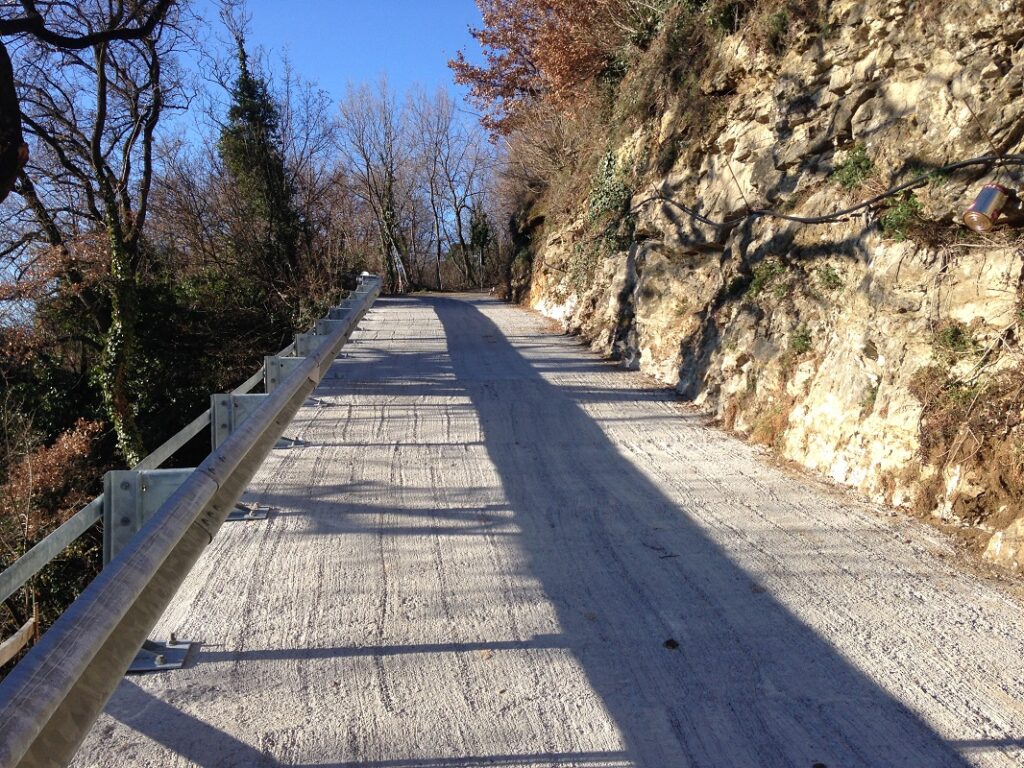 Il lavoro ha interessato il rifacimento di un tratto crollato della lunghezza di circa 20 m in posizione particolarmente esposta, della strada comunale detta “La Torta”, che collega l’abitato di Marano di Valpolicella con la frazione Pezza. Tale strada ha subito gravi dissesti in più punti durante vari eventi meteorici, particolarmente rilevanti, verificatisi negli anni 2013 e 2014. Nella presente fase è stato sistemato l’ultimo pezzo che determinava la chiusura completa al traffico, ricostruendo un muro di sottoscarpa su micropali, tirantato con un sistema passivo di barre tipo “gewi”