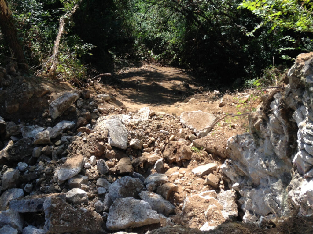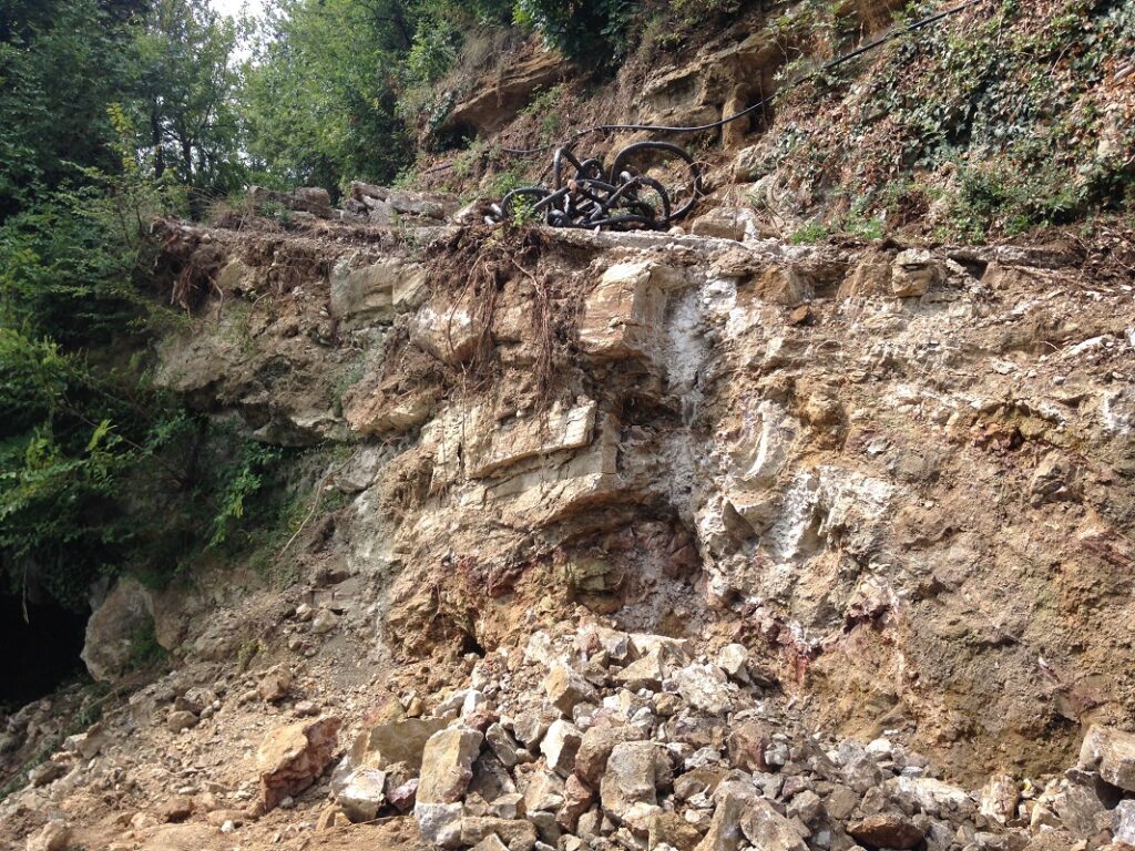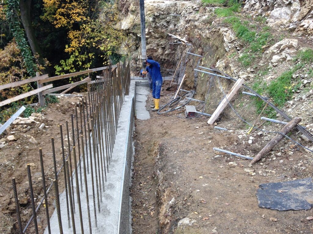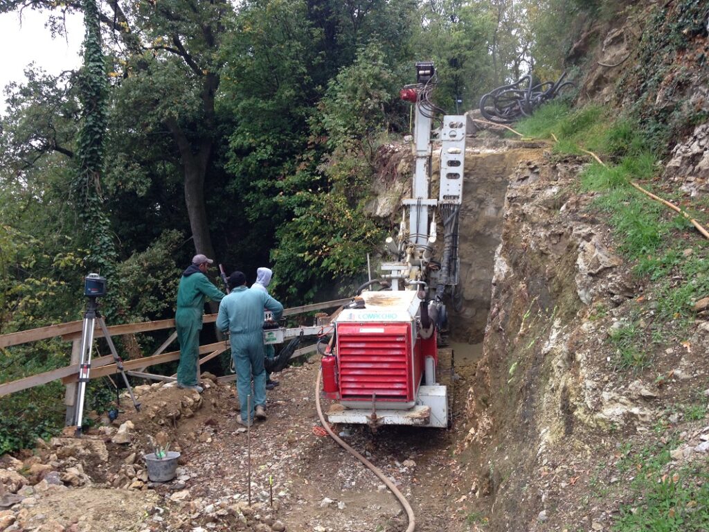 Il lavoro ha interessato il rifacimento di un tratto crollato della lunghezza di circa 20 m in posizione particolarmente esposta, della strada comunale detta “La Torta”, che collega l’abitato di Marano di Valpolicella con la frazione Pezza. Tale strada ha subito gravi dissesti in più punti durante vari eventi meteorici, particolarmente rilevanti, verificatisi negli anni 2013 e 2014. Nella presente fase è stato sistemato l’ultimo pezzo che determinava la chiusura completa al traffico, ricostruendo un muro di sottoscarpa su micropali, tirantato con un sistema passivo di barre tipo “gewi”